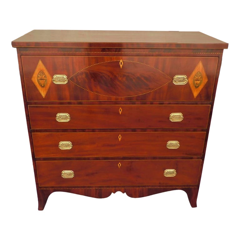 American Hepplewhite Mahogany Inlaid Chest of Drawers w/ Orig. Brasses, Circa 1800